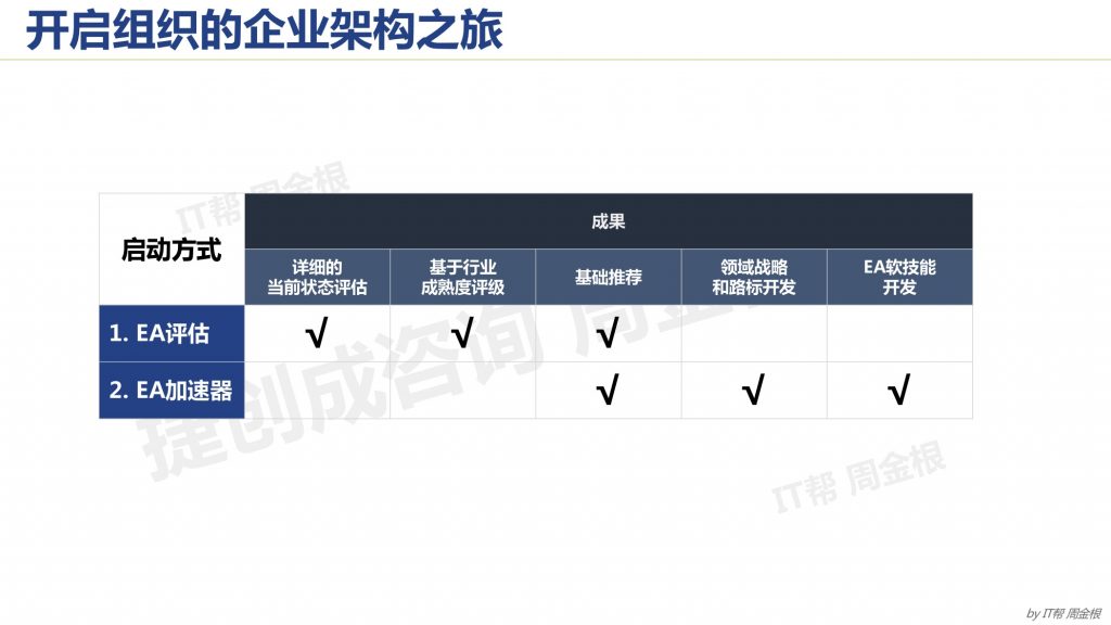 我们可以通过网络搜索到大量的企业架构资料,但这很容易让人不知所措。捷创成给很多学员和企业做过培训和咨询,我们发现许多客户知道他们将要从更成熟和现代的企业架构实践中获益,但他们仍然不知道应该从哪里开始?今天我们来了解两种不同的转型企业架构职能的方法,帮助你的企业开启EA之旅。