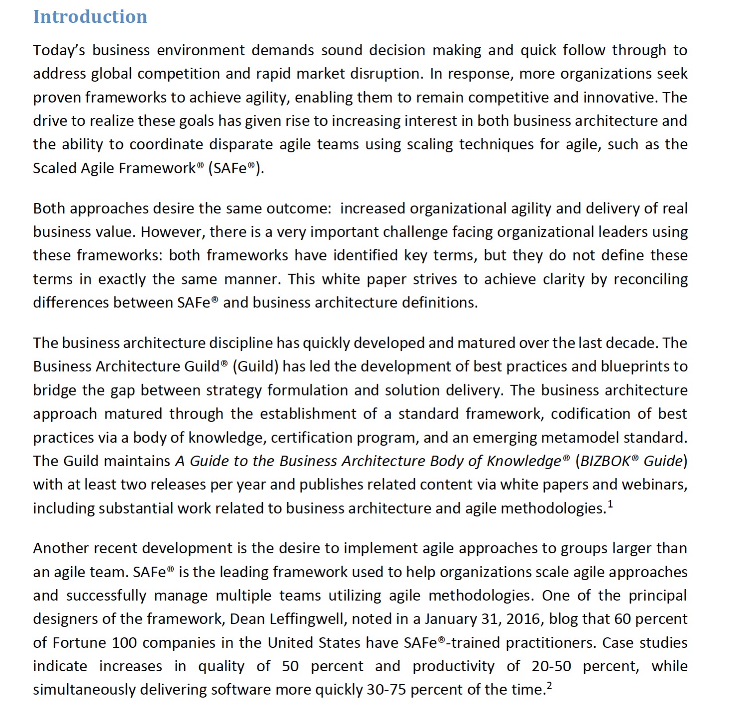 当今的商业环境要求做出正确的决策和快速的跟进,以应对全球竞争和快速的市场破坏。作为回应,越来越多的组织寻求行之有效的框架来实现敏捷性,使它们能够保持竞争力和创新性。为了实现这些目标,人们对业务架构和使用规模化敏捷技术(如SAFe®等)协调不同敏捷团队的能力产生了越来越多的兴趣。