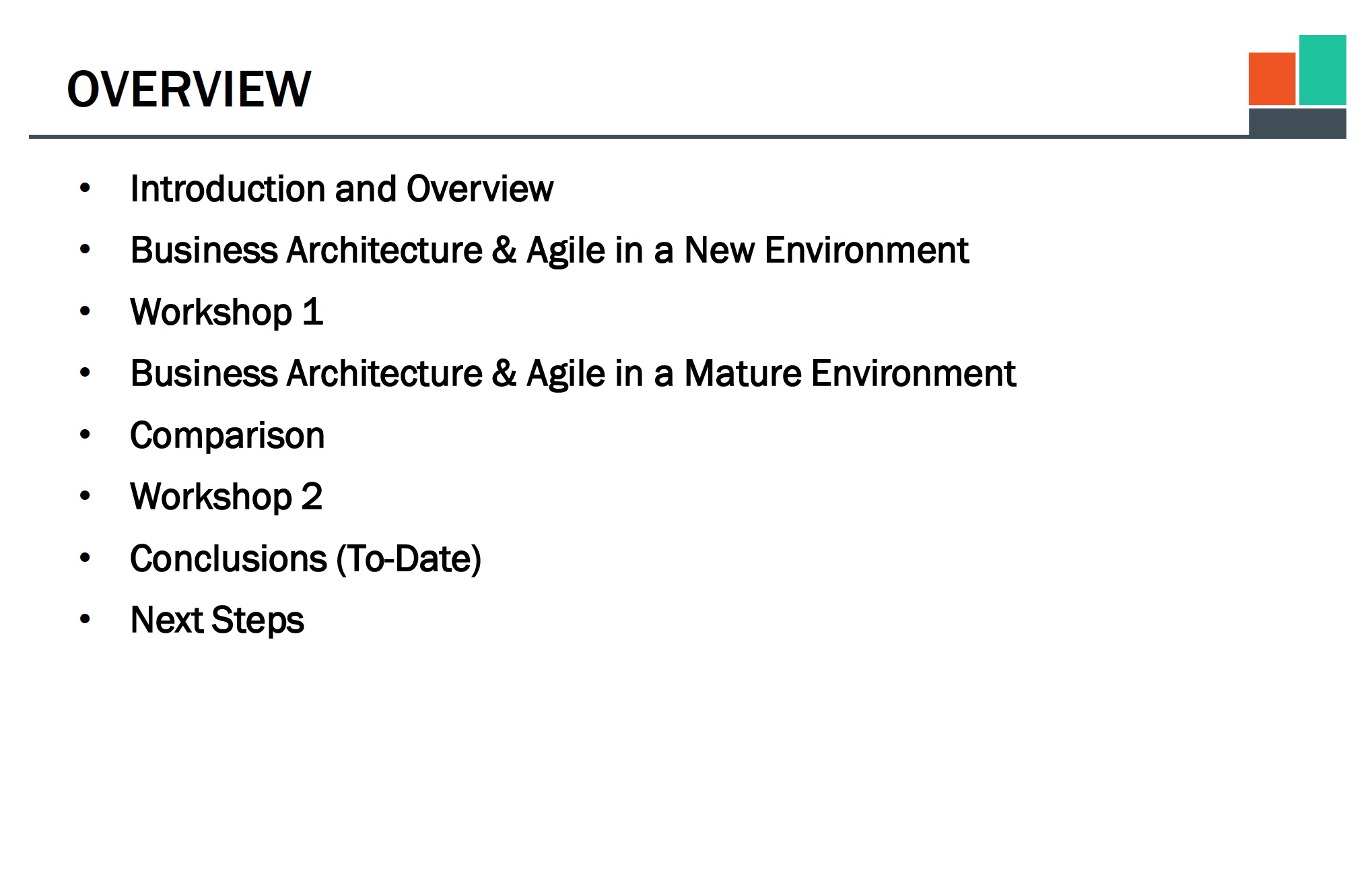 一个业务架构和敏捷方法论讲义,包括对敏捷的概述介绍,以及业务架构和敏捷在新环境和成熟环境的应用。